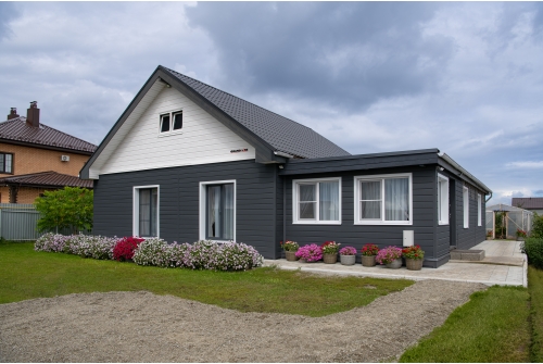 - При использовании покрытия Colority® Print, «ЭкоБрус GL» достигает максимального сходства с клееным брусом. Надежное скрытое сцепление панелей придает фасаду здания естественный вид.