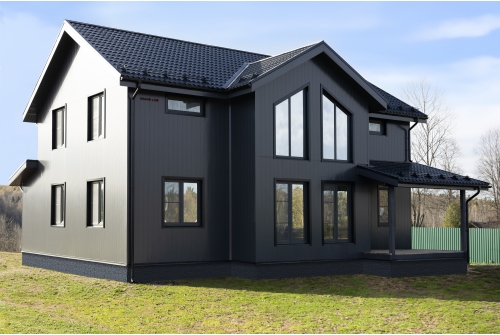 - В отличие от облицовки фасада деревом, металлический сайдинг Вертикаль прост в монтаже и не требует дополнительного послемонтажного ухода.