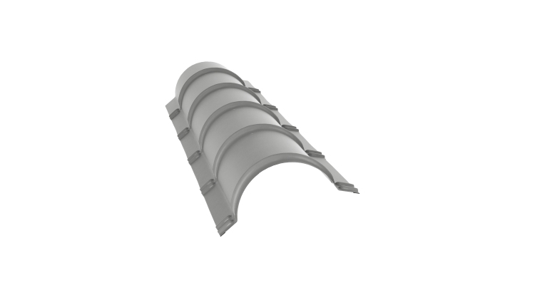Конек полукруглый / полукруглый малый — защищает листы металлочерепицы от смещения при сильных порывах ветра.