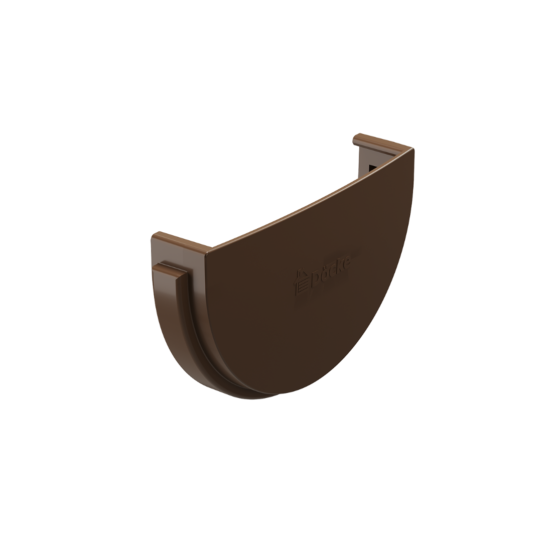 Светло-коричневая заглушка желоба является частью водосточной системы серии «Standard» такого же цвета. Она необходима для гарантии герметичности системы. Крепится на открытых краях желобов, не позволяя воде выливаться из желоба никуда, кроме воронки.